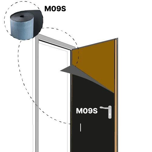 Odhlučnění dřevěných dveří můžeme rozdělit do tří etap - utěsnění zárubní, aplikace izolační rohože M09S a houby s otevřenými buňkami L10S. Standardní dveře mají rozměr 205 x 80 centimetrů, což znamená, že k provedení všech prací potřebujeme asi 6 běžných metrů těsnění a 2 metry čtvereční rohože (včetně potřebné rezervy).